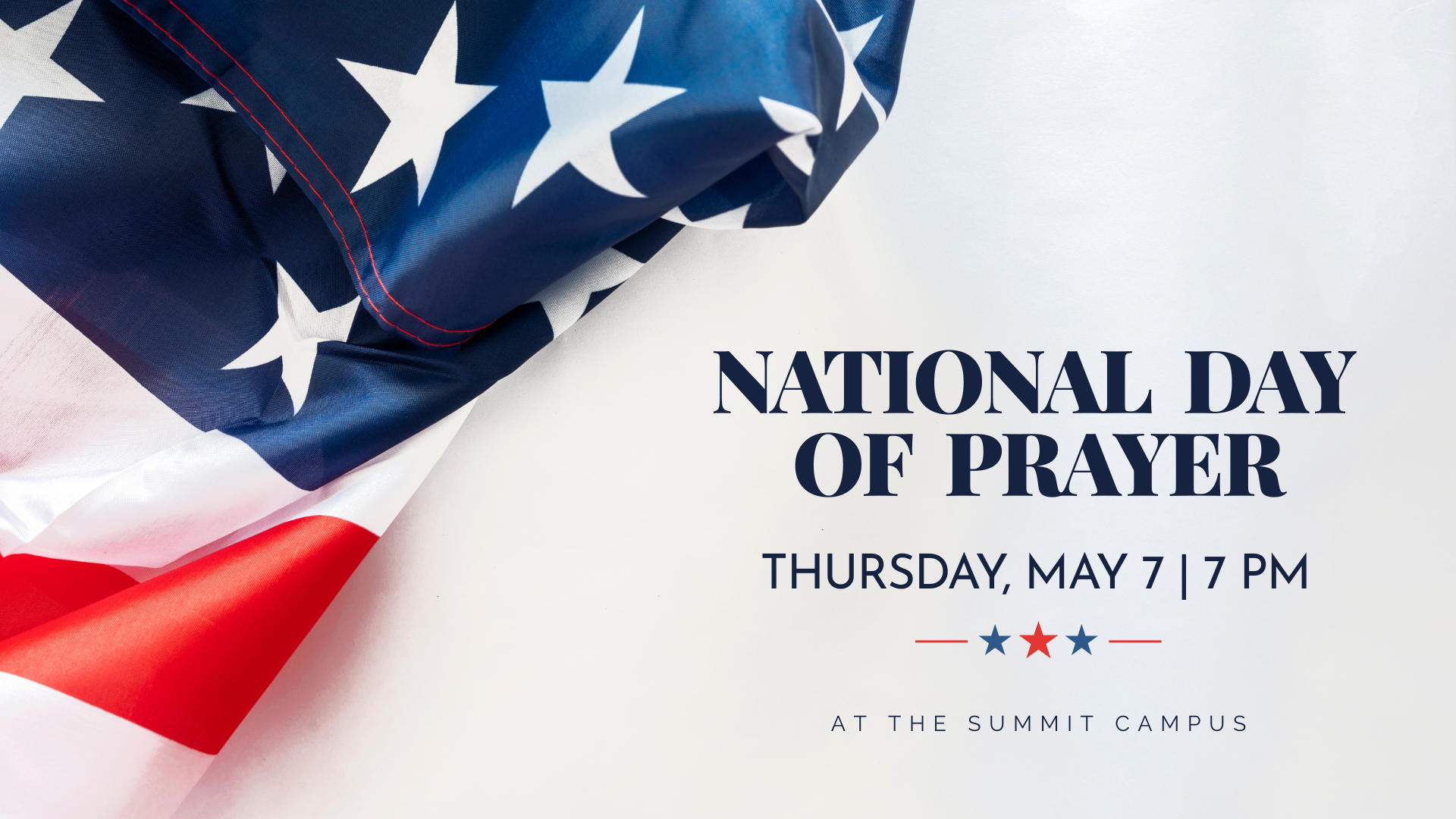 Join us as we gather together for the National Day of Prayer, a special evening set aside to seek the Lord on behalf of our church, our city, and our nation.