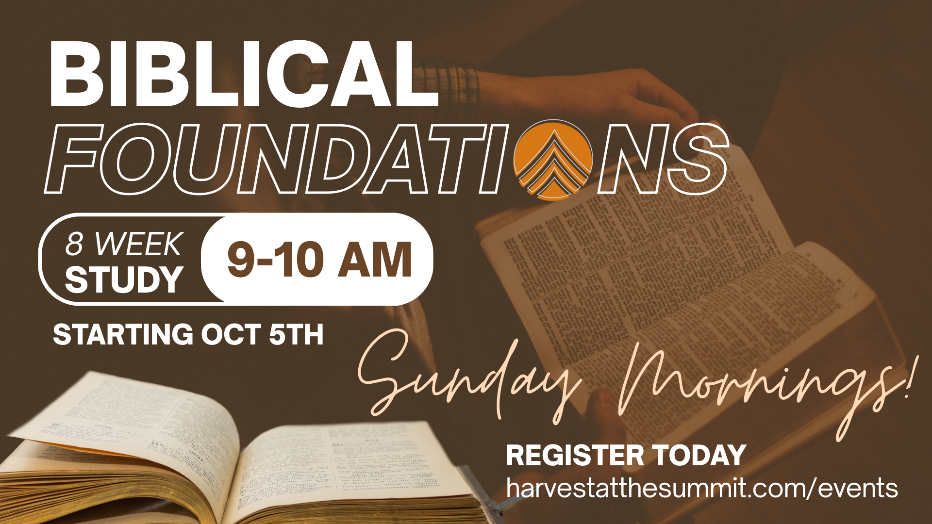 We’re excited to announce that this fall, starting Sunday, October 5th, we’ll be offering an 8 week Biblical Foundations class lead by Steve & Denise Gerber. It will be from 9-10 AM in the Green Lab room of The Summit campus.