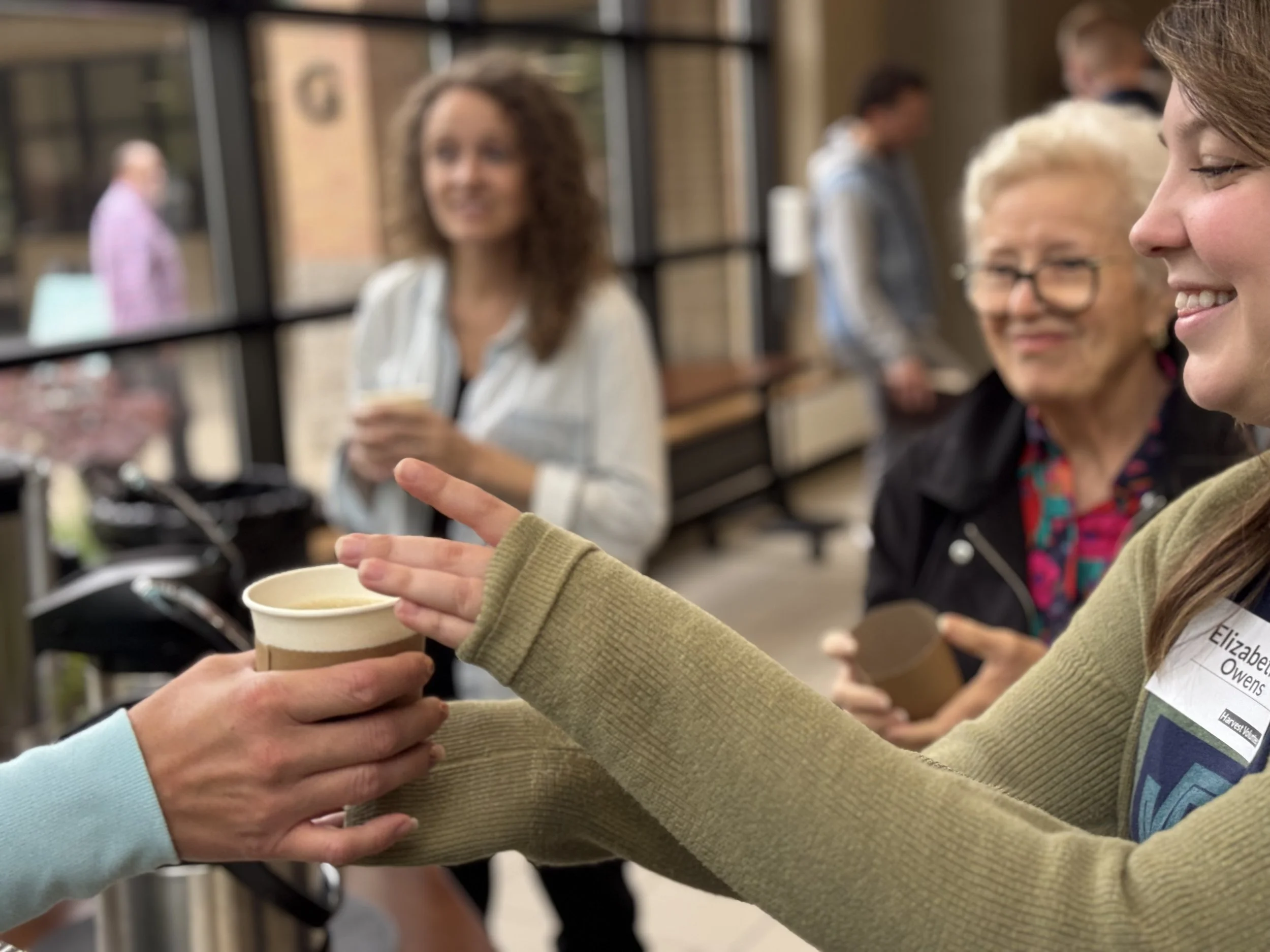 Of course there’s coffee! We brew local Utopian Coffee and we have tea, hot chocolate, and other seasonal drinks located in the foyer. Our team will be glad to get you a freshly brewed cup of coffee or your drink of choice!